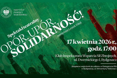 Biuro Wydarzeń Kulturalnych# Instytut Pamięci Narodowej, Instytut Pamięci Narodowej Delegatura w Bydgoszczy oraz Instytut Pamięci Narodowej Oddział w Gdańsku zapraszają na spektakl pt. „Opór. Upór. Solidarność!” w reż. Leszka Zdunia.