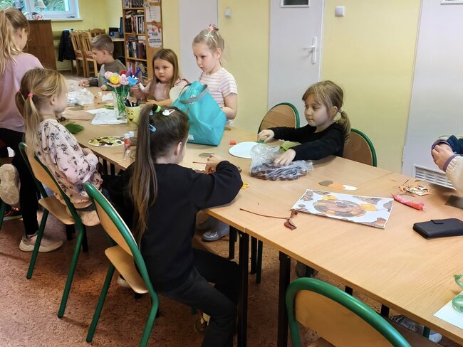 Jesienne spotkanie w bibliotece. Dzieci uczyły się, tworzyły i dobrze bawiły