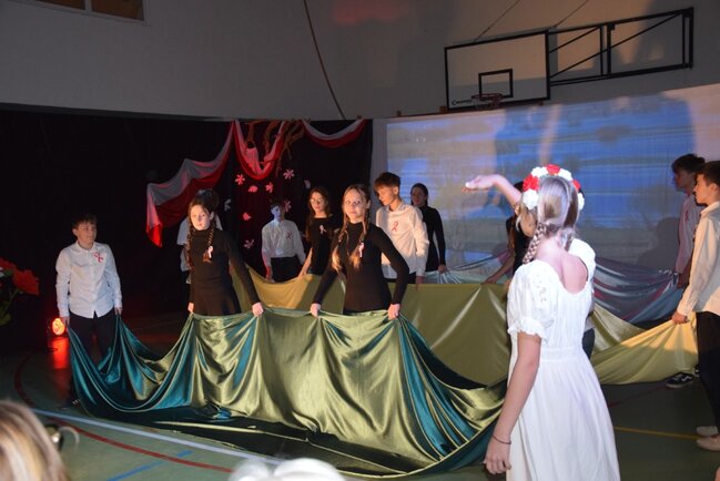 Uczniowie przygotowali piękne przedstawienie, w którym nie zabrakło patriotycznych pieśni i złożonej choreografii. Po oficjalnych obchodach przyszedł czas na marcińskie rogale oraz rozmowy. Wydarzenie zostało zorganizowane w ramach działań cyklicznych w konkursie „Nasz zabytek” dla Fundacji Most the Most.