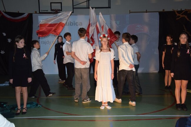 W piątek, 14 listopada, w Szkole Podstawowej im. Kardynała Stefana Wyszyńskiego w# Kruszynie społeczność gminy Sicienko spotkała się na obchodach Święta Nieodległości.