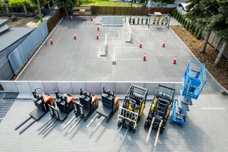 Na placu manewrowym ODEKA stoją prawdziwe maszyny: wózki widłowe, podesty, ładowarki i suwnice. Kursanci uczą się na urządzeniach zarejestrowanych w UDT, pod okiem doświadczonych instruktorów. Szkolenia odbywają się w realnych warunkach pracy, z naciskiem na bezpieczeństwo i precyzję obsługi.