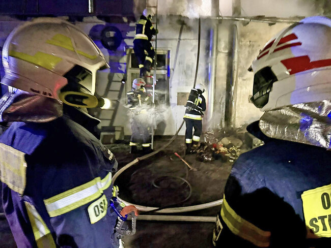 Początkowo zgłoszenie wskazywało na niewielkie zagrożenie, jednak po przybyciu pierwszego zastępu sytuacja okazała się znacznie poważniejsza. Ogień objął nie tylko śmieci, ale również elewację budynku, poszycie dachu oraz jedno z mieszkań. Płomienie szybko się rozprzestrzeniały, stwarzając realne zagrożenie dla całego obiektu.