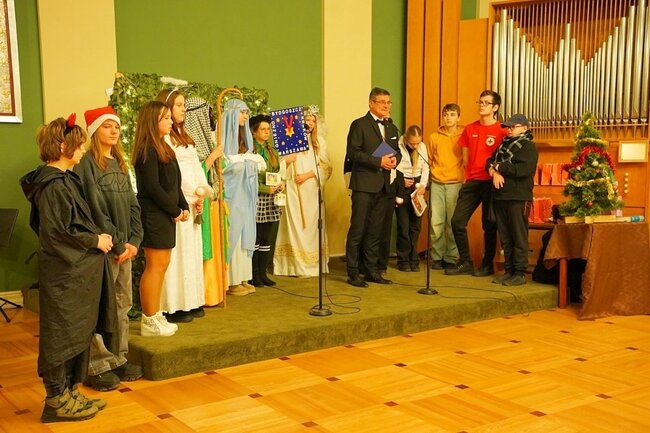 W spotkaniu uczestniczyli uczniowie z SP nr 10 w Bydgoszczy, którzy przygotowali m.in. jasełka.