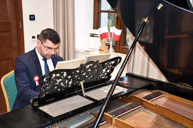 Mirosław Rosiński w wygłoszonej prelekcji przybliżył postać gen. Jana Henryka Dąbrowskiego. Michał Stropa akompaniował do hymnu na 130 letnim fortepianie znajdującym się od ostatniego piątku w głównej sali Pałacu w Sicienku (był to pierszy utwór zagrany na tym instrumencie w jego nowej lokalizacji).