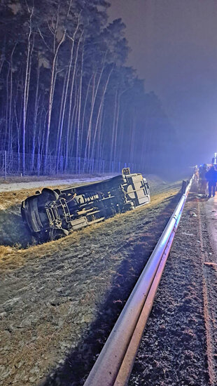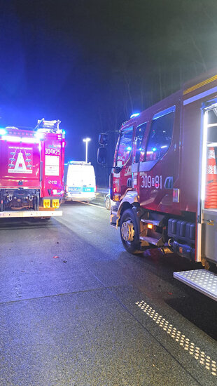 Dzisiejszej nocy, 18 lutego o godz. 1:43, na drodze ekspresowej S5 #w miejscowości Lisi Ogon doszło do groźnie wyglądającego zdarzenia drogowego. Samochód ciężarowy zderzył się z busem.