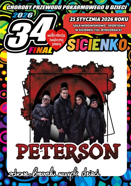 Zespół Peterson to zespół, dla którego muzyka jest największą pasją i sposobem na przekazywanie energii publiczności. Warto dodać, że wokalistką zespołu jest Aleksandra Matyka – mieszkanka Gminy Sicienko. Tym bardziej cieszymy się, że nasi mieszkańcy mogą zobaczyć ją na scenie podczas 34. Finału WOŚP!