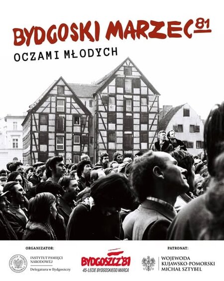 Zapraszamy uczniów klas VI–VIII szkół podstawowych #oraz uczniów szkół ponadpodstawowych z województwa kujawsko-pomorskiego do udziału w konkursie „Bydgoski Marzec 1981 r. oczami młodych”.