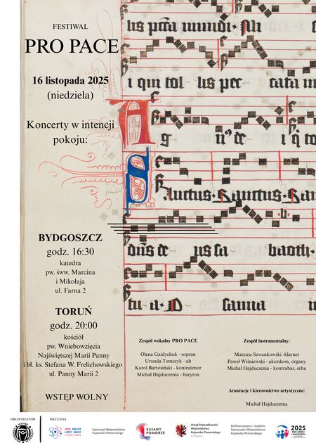 Już czwarty raz w Toruniu, a po raz pierwszy w Bydgoszczy wybrzmią #koncerty Pro Pace „o Pokój”. Tym razem wydarzenie przybierze formę Festiwalu Muzyki Sakralnej, której połączy Toruń i Bydgoszcz!