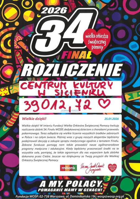 Za nami niezwykły 34. Finał Wielkiej Orkiestry Świątecznej Pomocy w Sicienku – #pełen emocji, wzruszeń, uśmiechów i wielkich serc.