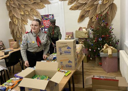 W pakowaniu aktywnie uczestniczyli harcerze 34 Drużyny Harcerskiej "Wędrowne Ptaki" oraz pracownicy Centrum Kultury w Sicienku – dziękujemy Wam za zaangażowanie i ogromną pomoc. Dzięki takim ludziom jak Wy ta inicjatywa ma prawdziwą moc!