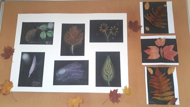 Uczestnicy spotkań i zajęć plastycznych w Świetlicy Wiejskiej w Murucinie te właśnie walory jesieni wykorzystali. Powstały wielobarwne prace wykonane farbami plakatowymi, suchymi pastelami oraz wyklejanki z naturalnych darów. Zainspirowani słowami wiersza pani Kamili Bednarek spędziliśmy miłe chwile pełne śmiechu, ale też nostalgii i skupienia.