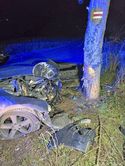 W piątek, 12 grudnia o godz. 6.05 strażacy z OSP Wtelno #wspólnie z OSP KSRG Gościeradz zostali zadysponowani na ulicę Nad Brdą w Tryszczynie, gdzie samochód osobowy uderzył w drzewo.