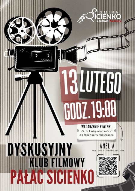 Już w piątek, 13 lutego o godz. 19.00 zapraszamy do Pałacu w Sicienku na wyjątkowe #spotkanie Dyskusyjnego Klubu Filmowego „Pałac Sicienko”.