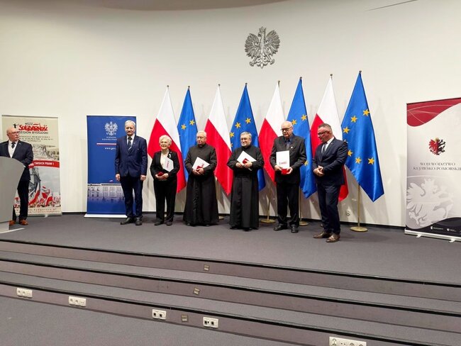 Podczas uroczystej gali w Kujawsko-Pomorskim Urzędzie Wojewódzkim w Bydgoszczy uhonorowaliśmy bohaterów tamtych dni. Złoty Krzyż Zasługi odebrał pan Ryszard Sieradzki, wręczono również medale „Zasłużony dla Regionu Bydgoskiego NSZZ Solidarność”. Obecny na uroczystości Wicewojewoda Michał Koniuch podkreślił znaczenie pamięci o ludziach, którzy nie wahali się poświęcić swojego bezpieczeństwa.