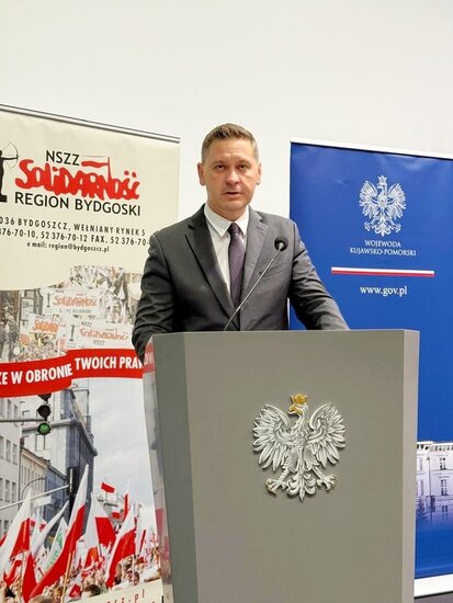 Wojewoda Kujawsko-Pomorski Michał Sztybel oddał hołd Bohaterom Solidarności, składając kwiaty pod pomnikiem upamiętniającym walkę o niepodległą i sprawiedliwą Rzeczpospolitą.